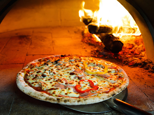 Pizzas a la leña recién horneadas entregadas directamente en su puerta.