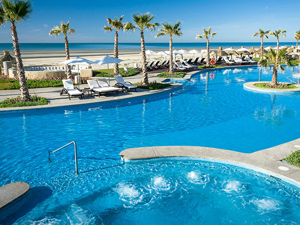 Con vista al Mar de Cortés, esta piscina cuenta con espacios para descansar y múltiples fuentes. Los huéspedes pueden disfrutar de los rayos del día en su espaciosa plataforma de lounge o disfrutar de un tentempié del Restaurante Balché.