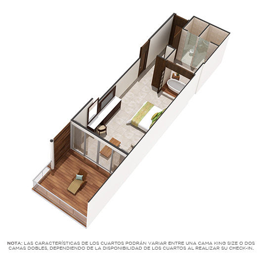 El Master Room tiene una recámara con cama king-size o dos camas dobles, una terraza privada, un baño con jacuzzi y una TV.