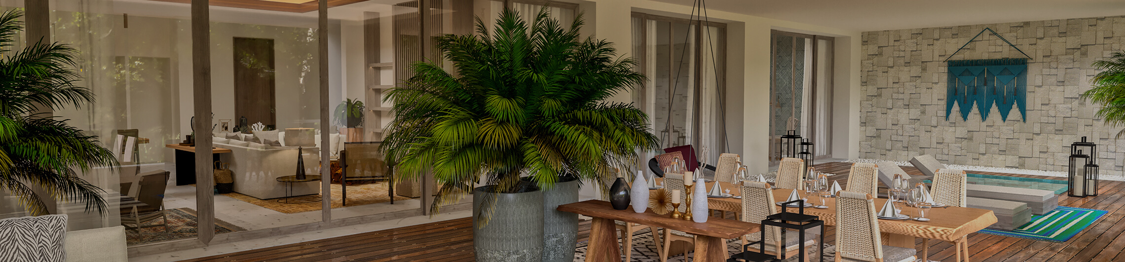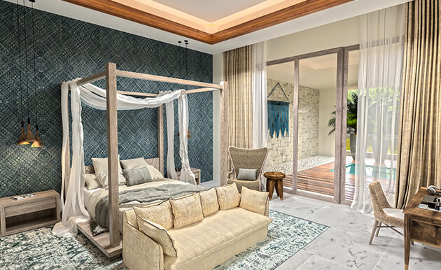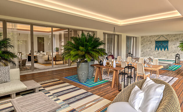 This stunning space features a kitchenette outfitted with the finest appliances, a stylish dining area seating six, a lounge area with abundant seating and a TV, a master bedroom with a king bed and a TV, a second bedroom with double beds and a TV, three bathrooms including two with a Jacuzzi tub, and an expansive private terrace complete with lounge seating, a plunge pool, and breathtaking vistas.