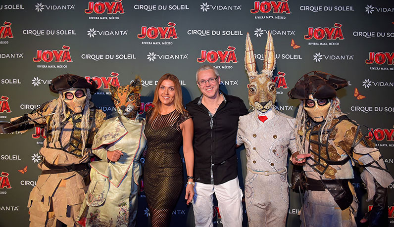 The anniversary party was preceded by a red carpet, where Mexican celebrities including Sherlyn, Los Rumberos de Massachusetts, Eddy Vilard, Benito Santos, Claudio Limón and Géraldine Bázan, graced the step-and-repeat wearing eye-catching masks that gave life to the party. Other notable attendees included Yasmine Khalil, president of 45 DEGREES from Cirque du Soleil; Richard Dagenais, the creator of JOYÀ; and Norma Preciado, the Commercial Director of Cirque du Soleil JOYÀ for Grupo Vidanta.