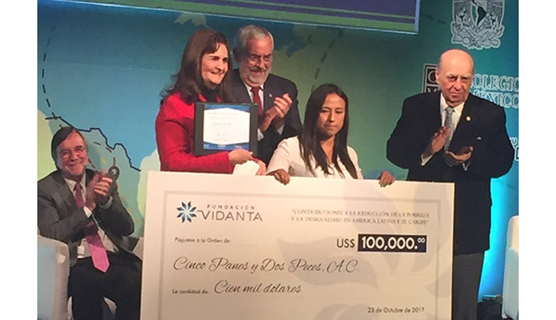 First prize of $100,000 was awarded to Cinco Panes y Dos Peces, a Mexican organization seeking to reduce risk and vulnerability to possible disasters, or medical and humanitarian emergencies in highly isolated and marginalized mountain communities in five states. Since its founding in 1992, the project has improved community response, livelihood and activation capacities in 657 communities, benefiting over 320,000 people since 2001. The recipients will use award funds to replicate the program in ten new communities in Oaxaca.
