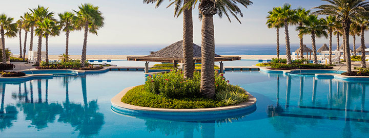 Guests at The Grand Mayan Los Cabos can luxuriate in a truly gorgeous, multi-tiered pool at this stylish destination.