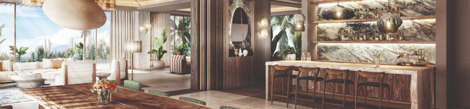 This incredible accommodation features 4 bedrooms, four and a half bathrooms, full kitchen, living room, dining room, and a private terrace with a pool and Jacuzzi.