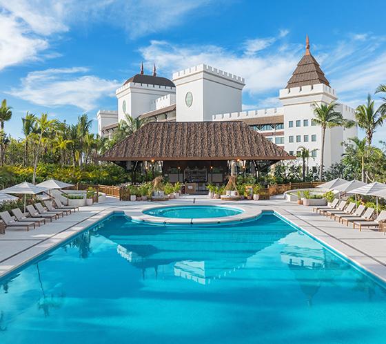 Perfect for kids, this area includes two wave pools with attached sandy beach and the beloved Mayan Pyramid Slide. Parents can enjoy the spacious lounge deck or service from the nearby Ola Mulata restaurant.