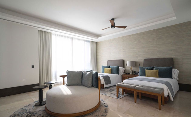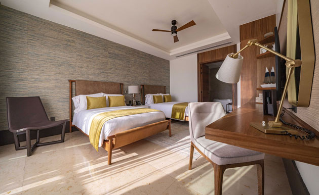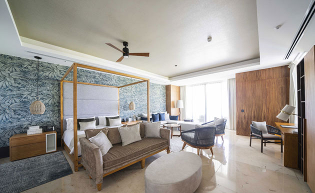 This palatial space features a gourmet kitchen outfitted with a breakfast bar and all the finest appliances, a stylish dining area seating eight, a gorgeous lounge area with a TV, four bedrooms, four and a half bathrooms, three Jacuzzi tubs, a terrace that extends around the perimeter of the unit with lounge seating, a dining area, a private pool, and views that will take your breath away.