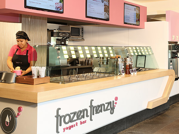 Self-serve frozen yogurt bar with a wide range of flavors and toppings.