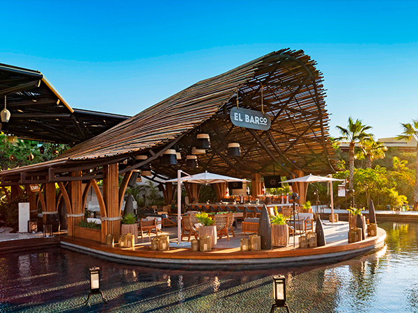 Overlooking the Sea of Cortez, this luxurious beach club offers a pristine pool surrounded by shaded cabanas, lounge beds, and swing beds for family fun. Also, two-story VIP cabanas can be reserved for more private enjoyment.