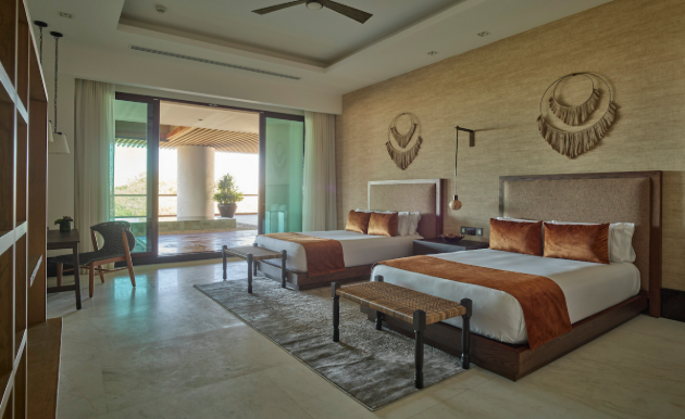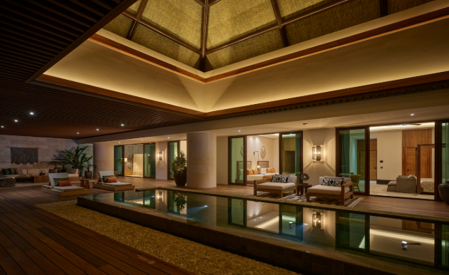 This awe-inspiring sanctuary redefines sophistication with a single-level design that blends indoor and outdoor living. Featuring a gourmet kitchen, a dining area for twelve, and a stylish lounge, this residence offers two master suites with king beds and spa-inspired baths, plus two additional bedrooms with twin beds and en-suite baths. Its crown jewel is the expansive terrace with private pool, multiple lounge spaces, and an elegant massage cabin, all crafted for unforgettable gatherings and ultimate tranquility.