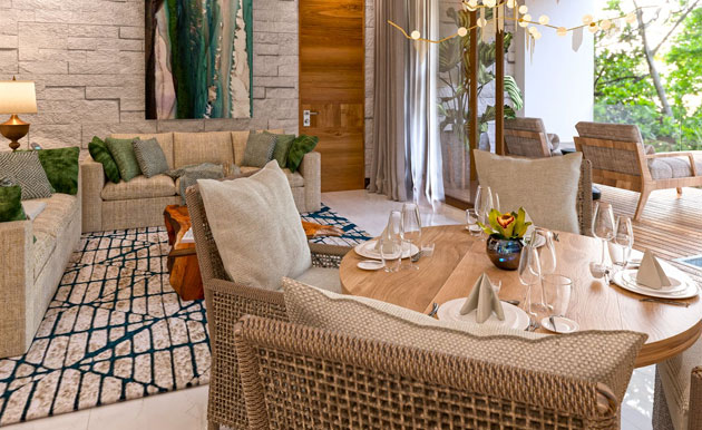 Este hermoso espacio cuenta con una cocina gourmet con desayunador y los mejores accesorios, un moderno comedor con espacio para seis personas, un área de descanso con una televisión, dos recámaras con una cama king y una televisión, otra recámara con camas dos camas individuales y una televisión, cinco baños incluyendo tres con Jacuzzi, y una amplia terraza con muebles de exteriores y una pequeña piscina.