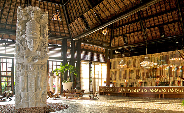A massive Mayan obelisk greets you as you enter the lobby of The Grand Mayan Riviera Maya, welcoming you to a special world where you and your family can enjoy the life you deserve.